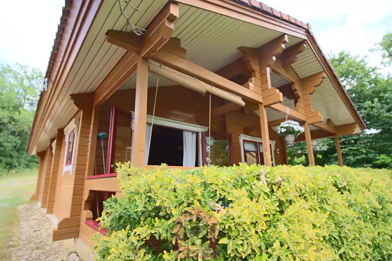 Situé dans un environnement paisible et verdoyant sans vis-à-vis, ce charmant chalet en bois de plain-pied vous séduira par son ambiance cosy et sa belle vue sur la campagne. Il développe une surface habitable de 60 m2, idéalement agencée.