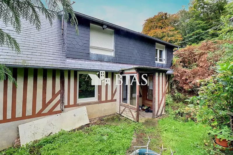 BAIS PONT-L'EVÊQUE vous présente à SAINT-HYMER cette maison nichée au coeur du pays d'auge et entourée de prés de deux hectares de terrain. Vous recherchez le calme, l'espace et la verdure ainsi que quelques travaux ce bien vous est destiné. Elle comprend une entrée, un séjour, une cuisine et une salle d'eau avec WC. A l'étage deux chambres. Possibilité d'agrandir par le biais des annexes accolées à la maison (buanderie, laiterie et débarras). De plus, un hangar (80 m² environ), un carport et un abri de jardin complète cette propriété. Invisible du chemin d'accès mais cependant non isolée. Une vue dégagée sur la vallée. Idéal pour chevaux ou autres animaux. A découvrir rapidement. Prévoir des travaux.