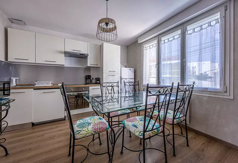 Située à seulement150 m de la plage et des commerces, au calme, cette maison de ville, sur 3 niveaux offre :