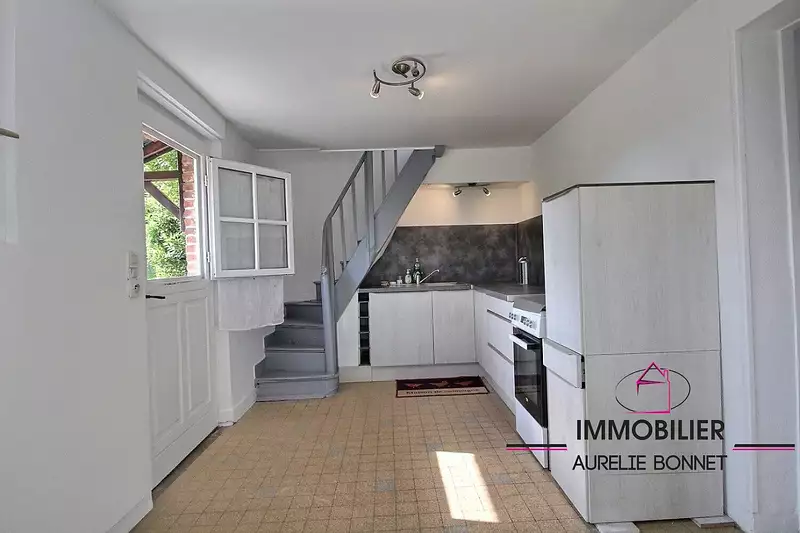 2 Kms de Livarot - Charmante maison en briques, typique du Pays d'Auge, rénovée de 60 m² implantée sur terrain de 343 m². Elle se compose au rez-de-chaussée d'une cuisine ouverte sur une lumineuse pièce de vie avec poêle à granulés, dégagement, salle d'eau avec W.C, une chambre. A l'étage, une chambre avec vue panoramique sur la campagne environnante, espace bureau et/ou dressing. Jardin - deux garages.