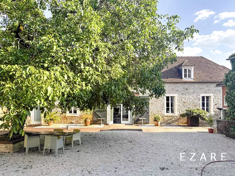 Là, dans une cour paisible que protège l'ombre bienveillante d'un noyer majestueux, trois demeures en pierres s'articulent avec élégance et harmonie, formant un écrin hors du temps, un théâtre propice aux réceptions, aux résidences d'artistes, aux instants familiaux suspendus, aux saisons partagées avec des hôtes de passage ou des vies entières à inventer.