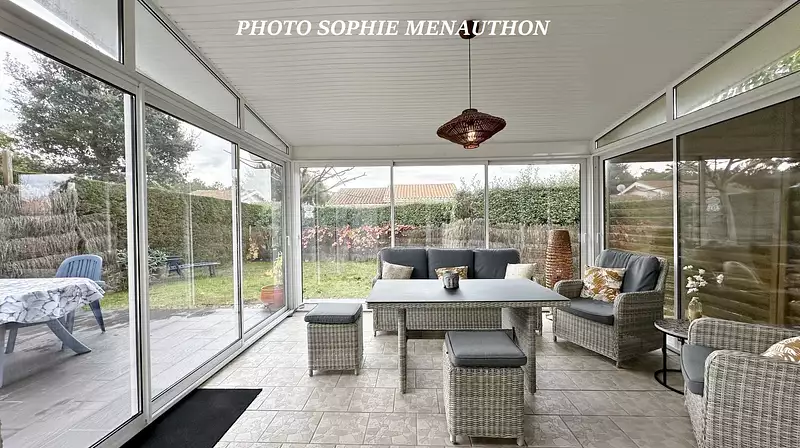 Coup de cœur assuré ! À seulement quelques minutes du centre-ville, dans un environnement calme, verdoyant et sans vis-à-vis, découvrez cette charmante villa patio de type T3 de 77 m² (dont 15 m² de véranda), pleine de charme et baignée de lumière. Elle offre une agréable pièce de vie avec cuisine ouverte, aménagée et équipée, deux belles chambres, une salle de bains, et wc séparé. Côté pratique : un garage de 20 m², deux petites dépendances (4 et 6 m²), et de faibles charges de copropriété. Le tout sur une parcelle de 245 m2. Un bien rare sur le secteur, parfait pour une résidence principale ou un pied-à-terre à l'année. À visiter sans tarder. Contactez Sophie MENAUTHON Tél : 06 25 42 67 68 ou Séverine ETCHEGARAY Tél : 06 75 49 61 04 EQUINOXES IMMOBILIER Agence specialisée en biens de Prestige Landes et Pays Basque Plus d'informations (réf. 4000926215) Prix TTC et Honoraires à charge vendeur TTC Les informations sur les risques auxquels ce bien est exposé sont disponibles sur le site Géorisques : georisques.gouv.fr