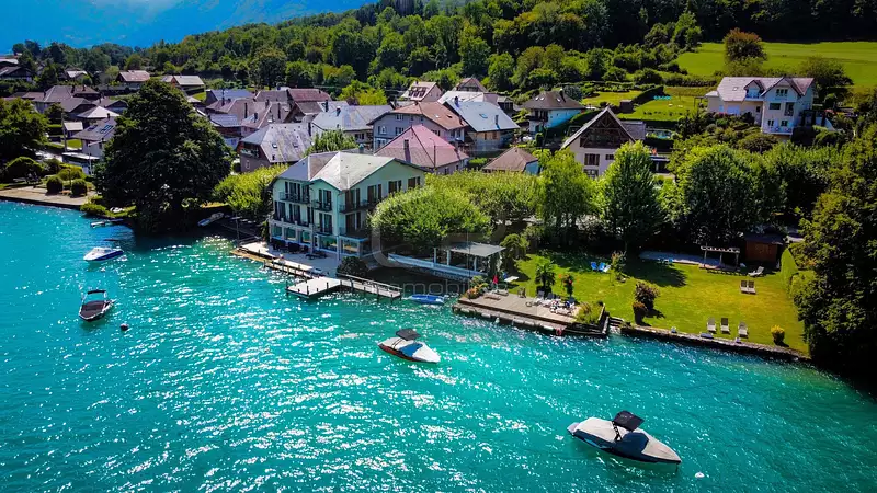 À VENDRE - Hôtel Restaurant Pieds dans l'Eau à Doussard, Établissement Historique et Emblématique RARE À LA VENTE - OPPORTUNITÉ EXCEPTIONNELLE SUR LES RIVES DU LAC D'ANNECY Situé dans la commune prisée et authentique de Doussard, sur la rive sud du lac d'Annecy, ce magnifique hôtel restaurant pieds dans l'eau est un bien d'exception, à la fois par sa situation, son histoire et son potentiel de développement. Un Établissement Chargé d'Histoire Propriété de la même famille depuis 1902, cet hôtel de charme à l'architecture savoyarde typique de la Belle Époque offre un cachet unique. D'une surface habitable de 631 m², il se compose actuellement de 17 chambres réparties sur deux étages. Le troisième étage abrite des combles aménageables, offrant une opportunité d'extension ou de création d'espaces supplémentaires. Un Cadre Idéal pour la Restauration et l'Événementiel Au rez-de-chaussée, vous trouverez : - Une réception chaleureuse - Une cuisine professionnelle - Une grande salle de restaurant pouvant accueillir jusqu'à 150 convives, parfaite pour l'organisation de mariages, réceptions privées, ou événements d'entreprise - Les terrasses en bord de lac, véritables atouts de l'établissement, permettent de profiter de repas inoubliables face à l'eau, dans un cadre naturel spectaculaire. Un Accès Direct au Lac d'Annecy Ce bien rare dispose de : - 2 pontons privés - 1 rampe de mise à l'eau - plusieurs accès baignade - 5 mouillages autorisés - 7 stationnements bateaux à la journée Toutes les AOT (autorisations d'occupation temporaire) sont en règle, assurant une exploitation sereine et légale. Infrastructures Complètes - Parking privé en façade - Possibilité de stationnements supplémentaires - Jardin paysager pieds dans l'eau, idéal pour la détente des clients - Potentiel de développement vers un hôtel de luxe avec activités nautiques haut de gamme Vente des Murs et du Fonds de Commerce L'ensemble est vendu murs + fonds, offrant ainsi pleine liberté d'exploitation au futur acquéreur. Un Bien Rare sur le Marché Les hôtels restaurants pieds dans l'eau à vendre sur le lac d'Annecy sont extrêmement rares. Cet établissement emblématique, à la réputation solide et parfaitement entretenu, constitue une opportunité unique pour investisseurs ou hôteliers souhaitant s'implanter dans un environnement naturel exceptionnel. Localisation : Doussard - Lac d'Annecy Surface : 631 m² habitables + combles aménageables 17 chambres Restaurant 150 couverts - terrasses lacustres Pontons, mouillages, accès baignade - AOT en règle Le prix indiqué est 6 735 000 euros Frais d'Agence Inclus. Honoraires à la charge de l'acheteur : 3.62%TTC du prix du bien hors honoraires (Prix hors honoraires : 6 500 000 euros). Les informations sur les risques auxquels ce bien est exposé sont disponibles sur le site Georisques. Contactez-nous pour plus d'informations et une visite privée FOR SALE - Waterfront Hotel Restaurant in Doussard, Iconic Lake Annecy Property EXCEPTIONAL OPPORTUNITY - RARE LAKEFRONT HOTEL FOR SALE ON THE SHORES OF LAKE ANNECY Located in the highly sought-after lakeside commune of Doussard, this magnificent waterfront hotel and restaurant is a unique investment opportunity. Rich in history and charm, this emblematic property has been family-owned since 1902. A Historic Belle Époque Hotel with Unique Charm Featuring traditional Savoyard architecture from the Belle Époque era, the building spans 631 m² of habitable space. It currently offers 17 guest rooms over two floors. The attic level (third floor) presents convertible space, ideal for further development or luxury suite additions. Ideal for Hospitality Events - On the ground floor, the hotel includes: - A welcoming reception area - A professional kitchen - A spacious dining room accommodating up to 150 guests, perfect for hosting weddings, private receptions, and corporate events - The large lakefront terraces offer an unforgettable dining experience, ideal for summer lunches and sunset dinners. Direct Access to Lake Annecy - A true waterfront gem, the property includes: - 2 private piers - 1 boat launch ramp - Multiple swimming access points - 5 authorized moorings - 7 daytime boat parking spaces All AOTs (temporary occupation permits) for the piers and moorings are fully compliant, ensuring peace of mind for future operations. Fully Equipped and Easily Accessible - Private car park in front of the property - Additional parking capacity available - A beautiful landscaped garden directly on the water's edge - Strong potential to develop into a luxury boutique hotel with premium water activities Property and Business for Sale This rare offering includes both the property and the business, giving the buyer full control and flexibility. A Rare Investment on Lake Annecy Waterfront hotels and restaurants for sale on Lake Annecy are exceptionally rare. This well-maintained, iconic establishment, with proven historical value and a prime location, is a unique opportunity for hospitality professionals or investors seeking to establish themselves in a prestigious and natural environment. - Location: Doussard - Lake Annecy - Size: 631 m² + convertible attic - 17 rooms - Restaurant for 150 guests - lakefront terraces - Piers, moorings, bathing access - fully authorized Contact us for more details and a private viewing
