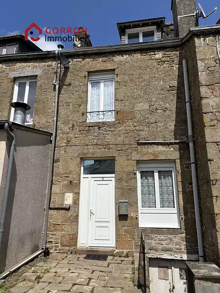 Située dans le centre de Gorron, commune avec tous commerces, maison en pierre mitoyenne comprenant :