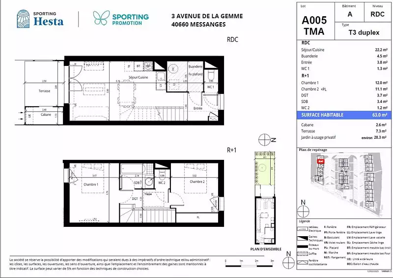 Découvrez cette maison T3 duplex mitoyenne neuve de 63 m² située dans le bourg de Messanges, proposée à 299 000 EUR. Conforme à la dernière réglementation environnementale RE 2020, elle offre un cadre de vie moderne avec 2 chambres, un salon lumineux, une terrasse accueillante, un jardin et 2 places de parking extérieur.