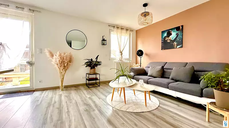 EXCLUSIVITÉ à OISSEL quartier SAINT-JULIEN Le Cabinet SAUVAGE TRANSACTION vous propose cette belle maison de plain-pied d'environ 65m2 édifiée sur une parcelle d'environ 400m2. Après le petit sas d'entrée de cette maison entièrement rénovée, vous accéderez à un séjour lumineux accompagné d'une salle à manger spacieuse et d'une cuisine ouverte entièrement aménagée. Un accès à un terrasse surplombant le jardin exposé sud est disponible grâce à une baie vitrée laissant entrer le maximum de lumière. Côté nuit, deux chambres avec placards et une salle de bains complètent le bien. PRÉCISIONS : Un sous-sol complet avec garage et une terrasse idéale pour profiter des journées ensoleillées. NOTRE INSTINCT IMMOBILIER vous conseille ce bien pour la qualité de ses prestations, sa disposition et son calme. (4.94 % honoraires TTC à la charge de l'acquéreur.)