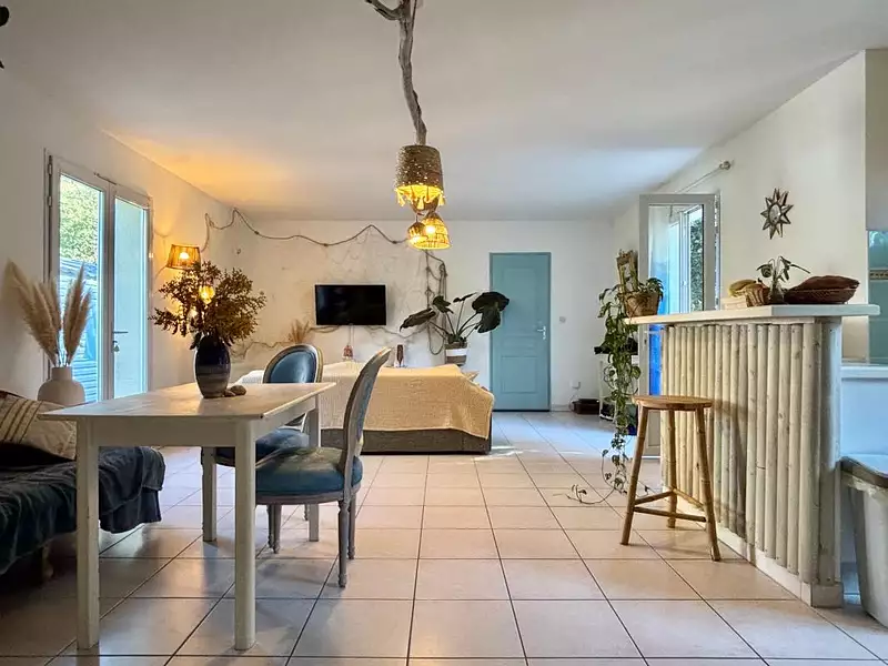 Édifiée sur un joli jardin paysager, elle se compose de deux chambres lumineuses, d'une pièce de vie chaleureuse et d'une décoration soignée, pleine de personnalité. Chaque détail a été pensé pour créer une atmosphère cosy et accueillante, idéale pour les vacances comme pour y vivre à l'année.
