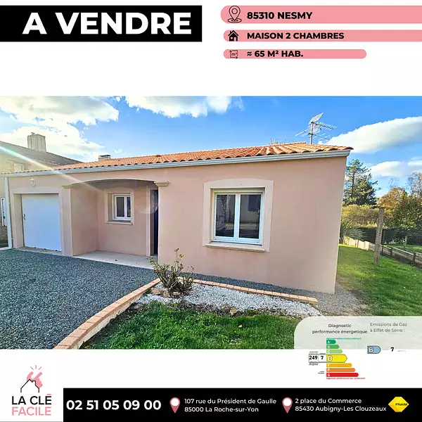 Honoraires inclus de 5.14% à la charge de l'acquéreur. Prix hors honoraires 185 000 €. Classe énergie D, Classe climat B Montant moyen estimé des dépenses annuelles d'énergie pour un usage standard, établi à partir des prix de l'énergie de l'année 2021 : entre 1250 € et 1740 €. Les informations sur les risques auxquels ce bien est exposé sont disponibles sur le site Géorisques : georisques.gouv.fr. Contactez nous au 02 51 05 09 00 ou 06 86 63 08 05