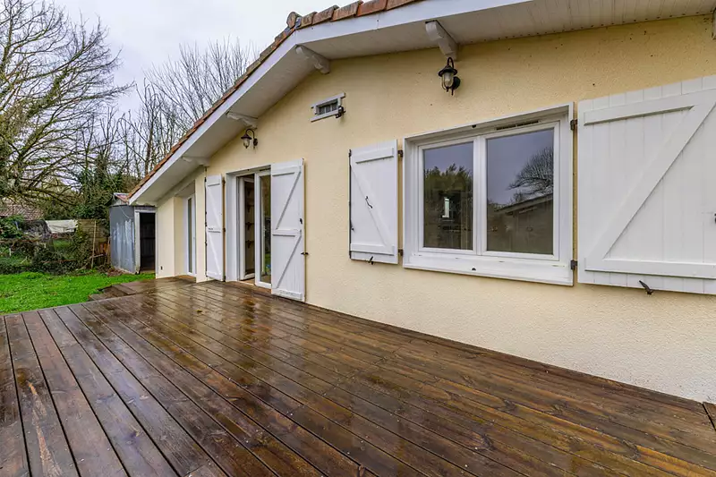 Le terrain de 526 m² est en bon état et dispose d'une terrasse de 25 m², parfaite pour profiter des journées ensoleillées. La maison est équipée de fenêtres en PVC double vitrage. Le chauffage est électrique avec des radiateurs, garantissant un confort optimal.