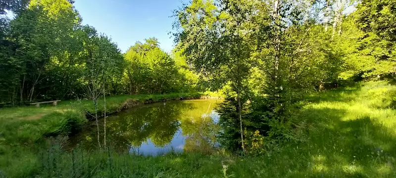 Le tout s'étend sur près de 3 hectares d'un écrin de nature préservée, avec un étang paisible, des prairies ouvertes et une forêt intime, invitant à la contemplation, à la liberté, à une vie hors du temps.