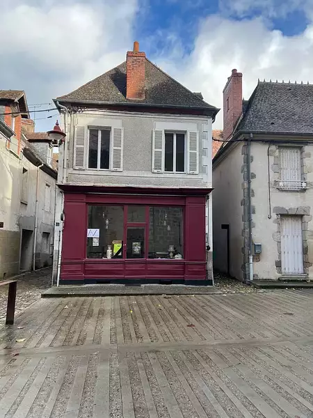 À vendre dans la Creuse, région Limousin, au centre de la ville: une maison, ancienne boutique, de 65m2 habitables comprenant