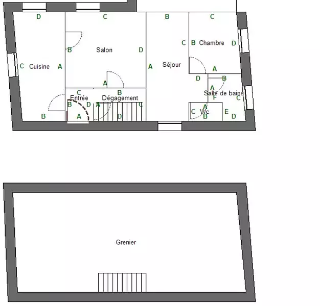 Le projet d'aménagement permettra de disposer d'une maison de ville comprenant une pièce de vie avec cuisine ouverte au rez-de-chaussée, ainsi qu'une chambre avec salle d'eau.À l'étage, possibilité de créer deux chambres supplémentaires et une deuxième salle d'eau.