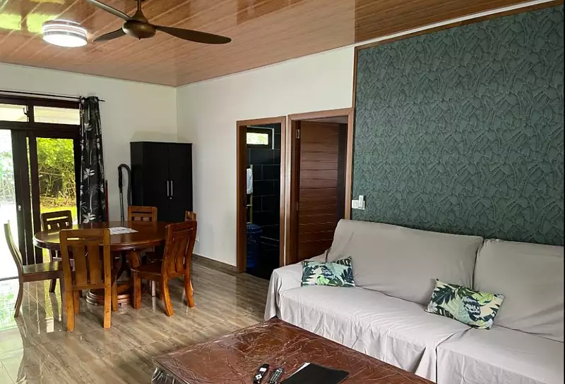 NOUVEAUTE ! MOOREA HAAPITI - A SAISIR : Jolie maison récente T3 ( 65 m2 hab.), séjour, 2 chambres climatisées , terrasse, cuisine équipée , salle d'eau , maison vendue meublée sur terrain plat de 500 m2 , idéal pour location saisonnières , bon rapport , ou 1 er achat.