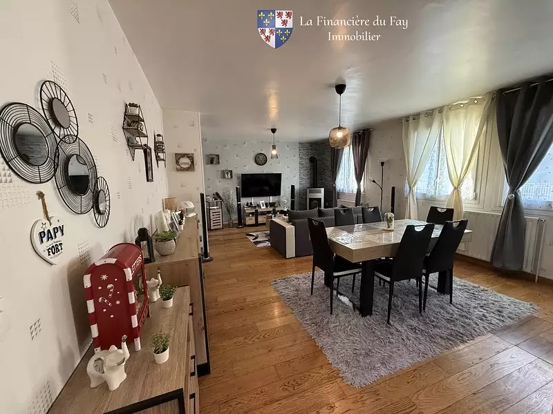 - une grande pièce de vie d'environ 27m2 bien lumineuse avec son poêle à granulés