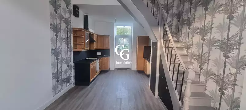 Maison ancienne entièrement rénové comprenant, au rez de chaussé une entré sur l'arriéré dans la pièce de vie avec cuisine, au 1 er étage un palier, une chambre et une salle de bains avec douche et WC.