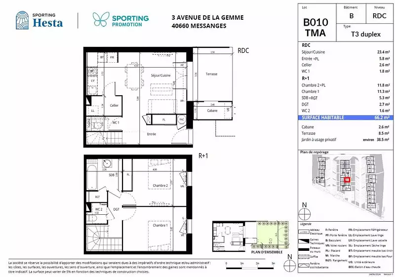 Découvrez cette maison T3 duplex mitoyenne neuve de 66 m² située dans le bourg de Messanges, proposée à 299 000 EUR. Conforme à la dernière réglementation environnementale RE 2020, elle offre un cadre de vie moderne avec 2 chambres, un salon lumineux, une terrasse de 8,5m², un jardin de 38 m² et 2 places de parking extérieur.
