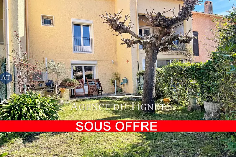 Située au grand calme, à proximité immédiate des écoles et des commerces, cette jolie maison mitoyenne d'environ 66,50 m² avec jardin, comprend : au rez-de-chaussée une entrée avec placard, un dégagement, WC ind, une cuisine indépendante équipée, un séjour salon de 20 m² climatisé avec cheminée donnant sur terrasse.