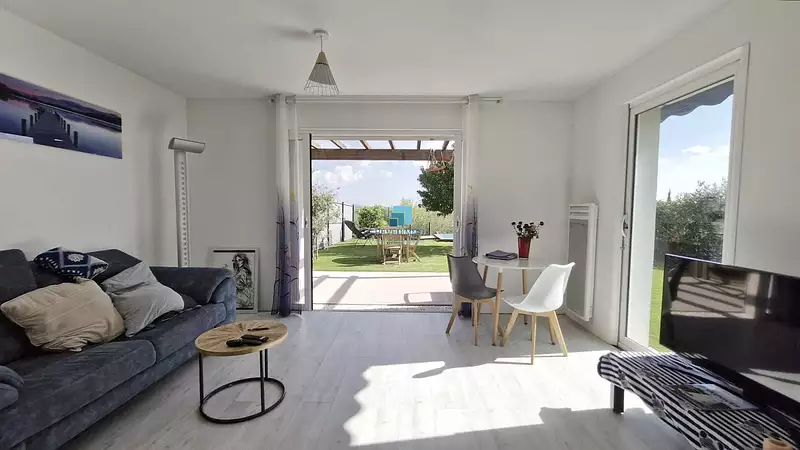 Maison de 66m² Mitoyenne d'un coté, avec garage de 20m² sur un terrain de 410m² avec piscine privative.