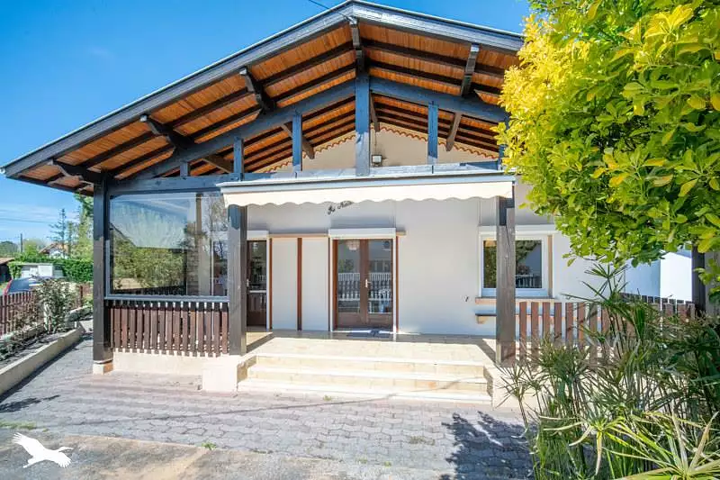 Maison composée de 2 chambres et salle d'eau. Son séjour donne accès sur une terrasse couverte exposée SUD. Garage avec plusieurs possibilités : studio indépendant, bureau, chambre parentale. Appentis fermé pour stockage. Idéalement placé dans un quartier à proximité des commerces tout en restant au calme. Lac et Océan à 5 minutes Proposition d'aménagement virtuel non contractuelle en dernière photo.