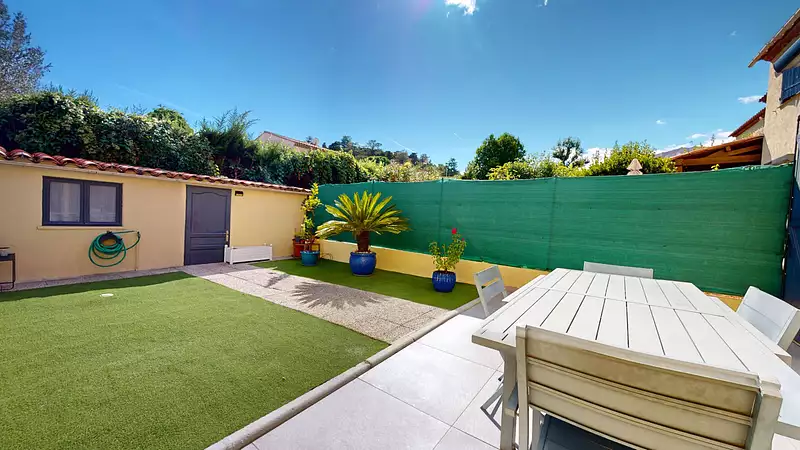 A quelques minutes à pied du Shopping Promenade Riviera, dans un environnement sécurisé et parfaitement calme, découvrez cette maison moderne de 65 m², lumineuse et entretenue avec soin. Un véritable cocon où chaque mètre carré est optimisé. Zéro travaux. Double extérieur avant et arrière. Rangements intégrés. Dépendance / buanderie de 9 m² avec arrivée d'eau et électricité. Place de stationnement privative. Ne vous fiez pas à la surface affichée : entre l'agencement intelligent, la buanderie/dépendance de 9 m² venant valoriser les m² de la maison (au total 77m²) et les deux espaces extérieurs, vous aurez la sensation de vivre dans une maison bien plus grande. Aucun espace perdu, tout est pensé pour le confort. Disposition : Au rez-de-jardin, le séjour ouvre sur la terrasse avant et la cuisine américaine donne sur le jardin arrière. WC indépendant. A l'étage, deux chambres dont une de 15 m² avec vaste dressing, salle d'eau contemporaine et WC indépendant. Les extérieurs offrent deux espaces distincts (avant et arrière), permettant de profiter de la lumière toute la journée. Pelouse synthétique, entretien minimal. La dépendance de 9 m² avec eau et électricité s'additionne fonctionnellement à la superficie habitable et permet de créer une buanderie, un espace de stockage ou un atelier. Une place privative est incluse avec la maison et d'autres stationnements sont disponibles à proximité. Un bien rare, clé en main, qui apporte un véritable confort de vie au quotidien. Visite virtuelle disponible sur demande.