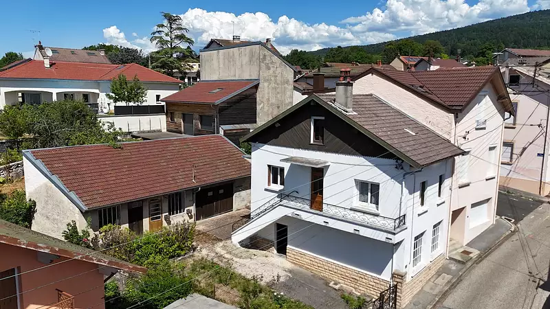 A vendre à Oyonnax, proche du centre-ville, maison avec dépendances sur un terrain clos de 277 m², avec portail, cour pavée et petit jardin. Le premier étage (env. 50 m²), accessible par un escalier extérieur, comprend : -Une cuisine semi-ouverte sur la pièce de vie -Deux chambres (dont une en enfilade) -Une salle d'eau A l'étage : une chambres supplémentaire très spacieuse. Le rez-de-chaussée d'environ 50 m², avec une belle hauteur sous plafond et de grandes ouvertures, est entièrement aménageable. Idéal pour créer une grande pièce de vie ou un loft. Dépendances : deux ateliers + un garage. Surface habitable actuelle : 67 m² + 50 m² aménageables. Maison avec beaucoup de potentiel, idéal résidence principale ou investissement.