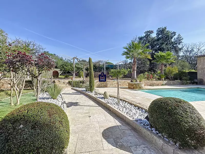 - Espace extérieur aménagé et jardin paysager comprenant une grande piscine, une douche, arrosage automatique,