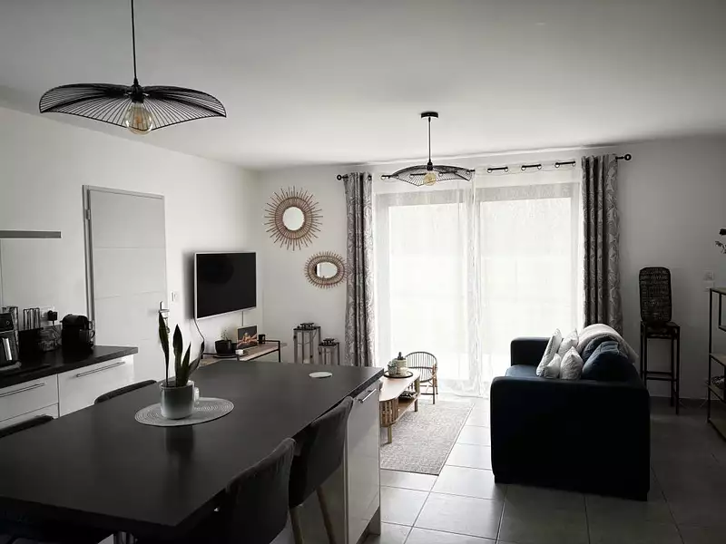 POUR INVESTISSEURS: Au calme , en impasse Maison de type 3 en duplex de 2015 de 68m² avec garage de 19 m², terrasse et jardin. Cette maison en pleine propriété se compose au RDC d'une belle pièce de vie lumineuse avec sa cuisine équipée de 33 m² env et d'un WC .A l'étage nous avons 2 chambres avec placard, une salle de bain et un WC.