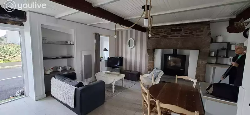 Venez découvrir cette charmante petite maison en pierre de 68 m2 à 1 km de la plage, se composant au rdc d'une pièce à vivre avec cuisine ouverte, WC. Au premier étage une grande chambre et une salle de douche. Au deuxième étage une grande chambre. Petit jardin clos.