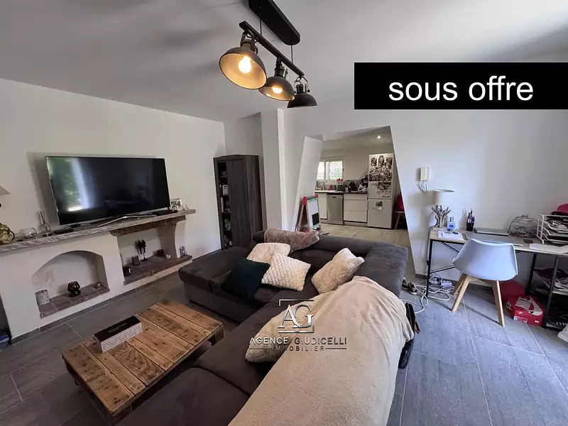 Jolie maison mitoyenne de type F3 ( 68 m2 ) entièrement rénovée composée au rez de chaussée d'une cuisine entièrement équipée , d'un salon , d'un wc ,d'une buanderie .
