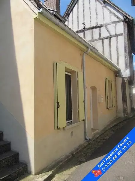 Au centre d'un bourg tous commerces, maison comprenant au rdc: entrée, cuisine aménagée ouverte sur séjour (poêle à granulé), chambre, dégagement, salle d'eau, wc. A l'étage: palier desservant 2 chambres et salle de bains wc. Petite cour. Cave voutée.
