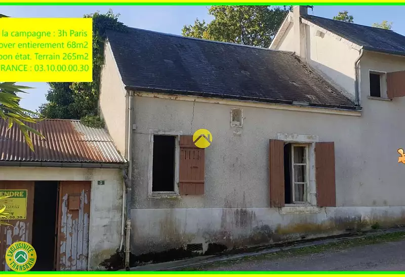 Transaxia IMPHY, Barrat Maelline (EI) RCS Nevers : 93901025200020 : Nièvre, belle région centre France à seulement 3h de Paris, située dans le bourg de St SAULGE : Maison de 1889 élevée sur cave, à réhabiliter entièrement sauf gros œuvre en bon état (quelques ardoises à replacer), composée en RDC : Garage avec chaudière fioul, cuisine, séjour, dégagement, 1 chambre. Etage : 2 petites chambres avec possibilité d'en faire qu'une. Terrain clos non défriché de 265 m2. Contact : TRANSAXIA FRANCE : 03.10.00.00.30.