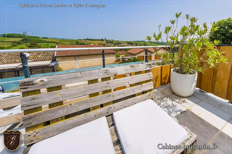 EXCLUSIVITE - POUILLY-LE-MONIAL - Située à 3 minutes à pied du centre village, avec accès aux commodités à pied, cachet et fonctionnalité pour cette Maison/Appartement en excellent état d'environ 68.81 m2 habitables (67.03 m2 loi Carrez) dans une bâtisse en pierres. Elle comprend de Plain-Pied : chaleureuse pièce de vie avec poêle à bois donnant accès à la terrasse et au jardin, cuisine équipée, wc et buanderie/cellier. A l'étage : dégagement, 2 chambres avec rangements et salle de bains avec wc. Le jardin d'environ 70 m2 est au calme et profite d'une vue dégagée. Un grenier d'environ 7 m2 (possible plus), 2 emplacements de stationnement et un garage d'environ 15 m2 complètent ce bien.
