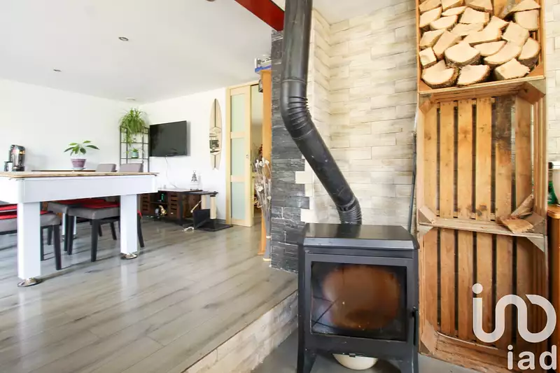 Le chauffage est assuré par un système au sol et un insert bois, offrant une chaleur douce et enveloppante en hiver.