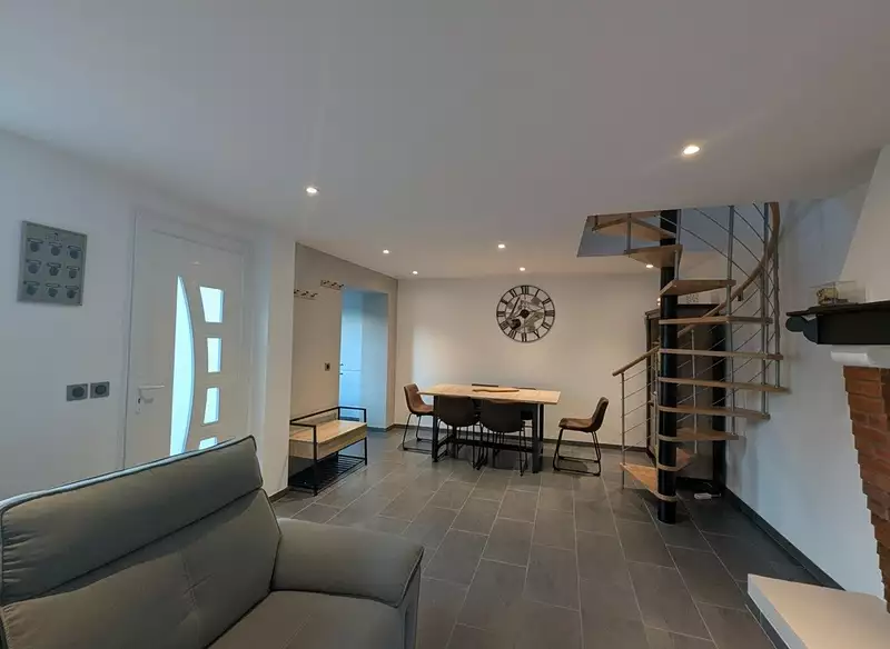 La pièce principale permet d’organiser un espace salon et salle à manger, attenante à une cuisine aménagée et équipée.
