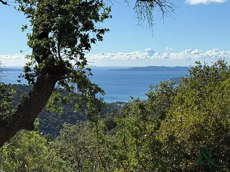 A vendre en Exclusivité. Bormes les Mimosas, Route des crêtes jolie maison de plain pied en pierres de Bormes avec piscine sur 8 hectares de terrain. Elle se compose d'un séjour ouvrant sur une terrasse vue mer, d'une petite cuisine de deux chambres d'une salle de bains et de toilettes séparés. Forage et panneaux solaires. Très grand terrain en nature de collines. Très belle vue mer, au calme. Garage et dépendance. Pour les amoureux de nature et d'indépendance. A deux kilomètres du village médiéval de Bormes. Attention: Pas d'extension possible. (4.62 % honoraires TTC à la charge de l'acquéreur.)