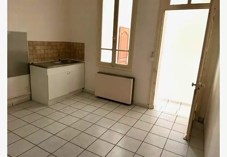 CHAUNY pour cette maison louée avec séjour, cuisine, SDB, WC, couloir. Etage : palier, chambre. Chauffage électrique. Cave. Courette.