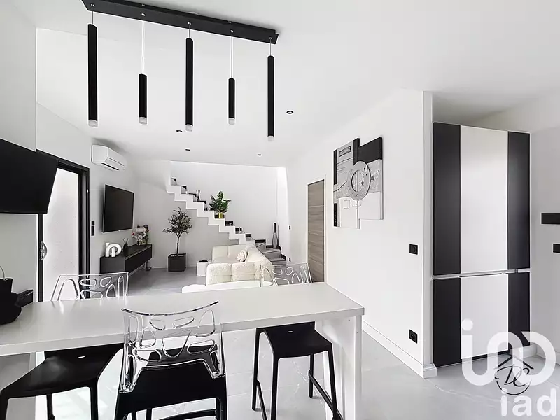Cette maison a été pensée pour offrir confort et qualité de vie exceptionnelle, avec des matériaux de choix, des prestations haut de gamme, climatisation réversible, volets motorisés et un emplacement idéal à seulement quelques pas de la plage.
