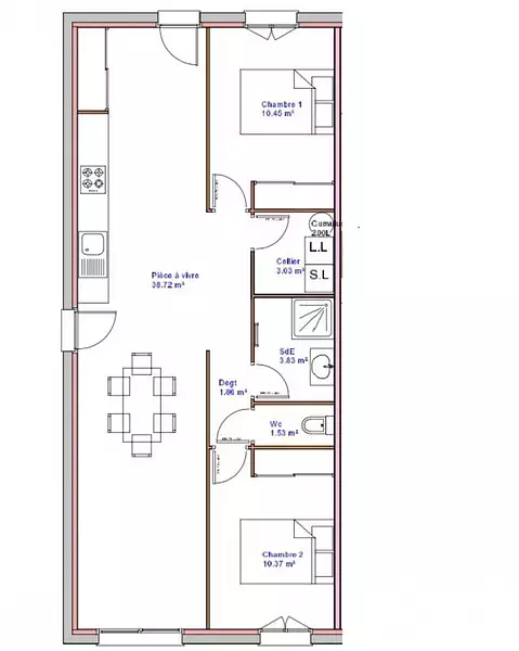 | 70 m² - 3 pièces - 2 chambres | Orientation : Est |