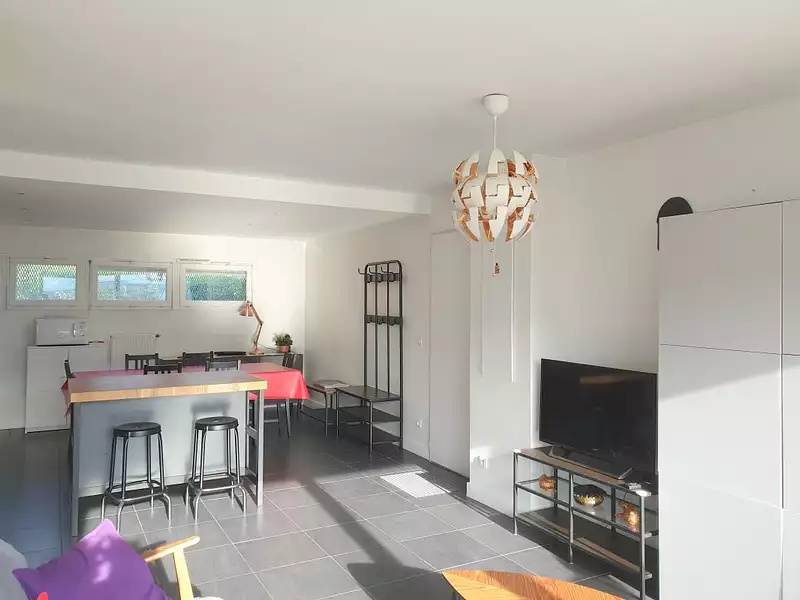 Elle se compose d'une vaste pièce de vie avec un espace cuisine, salle à manger et salon, donnant sur une terrasse exposée Sud et un agréable jardinet. A l'étage, un palier dessert deux chambres avec dressing, une salle de bains et une petite lingerie.