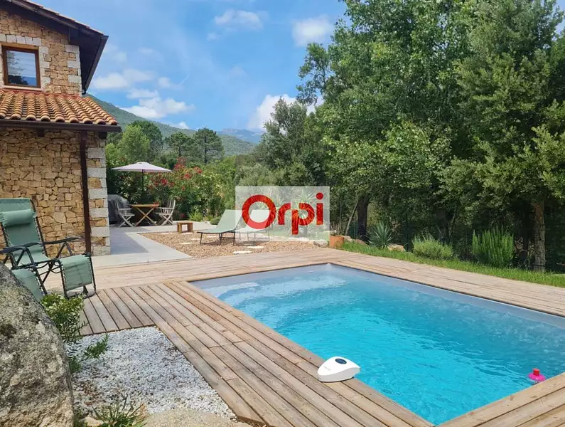 Cette charmante villa mitoyenne se situe à quelques minutes de Porto Vecchio dans un environnement calme.