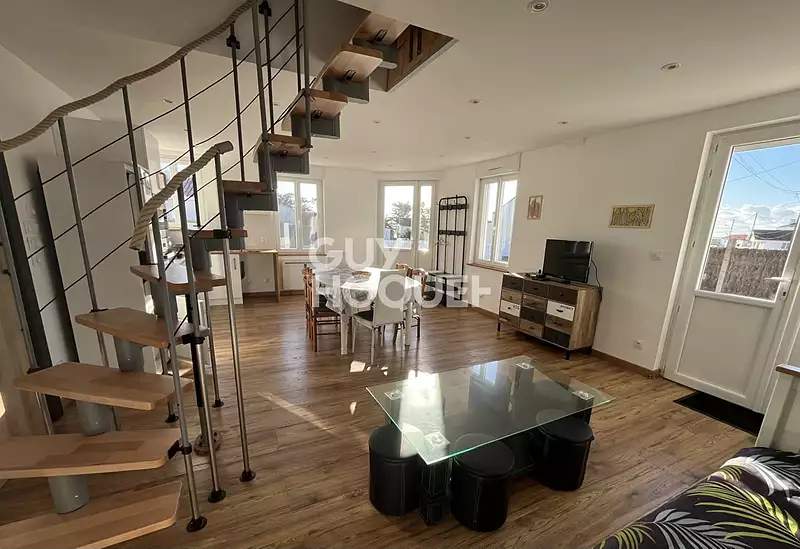 Venez découvrir cette maison proche de la mer et des commerces située entre Saint Hilaire de riez et Sion sur l'océan . Elle comprend au rez de chaussée une cuisine équipé, un séjour et un cellier avec un WC. Au premier étage deux chambres avec une possibilité de faire une troisième chambre vous y trouverez également une salle d'eau avec un WC. Vous serez séduit par cette maison lumineuse avec apercue sur mer et des prestations de qualité. Une terrasse complète ce bien pour profiter d'un cadre idéal. Plus de renseignments en agence!! (4.92 % honoraires TTC à la charge de l'acquéreur.)