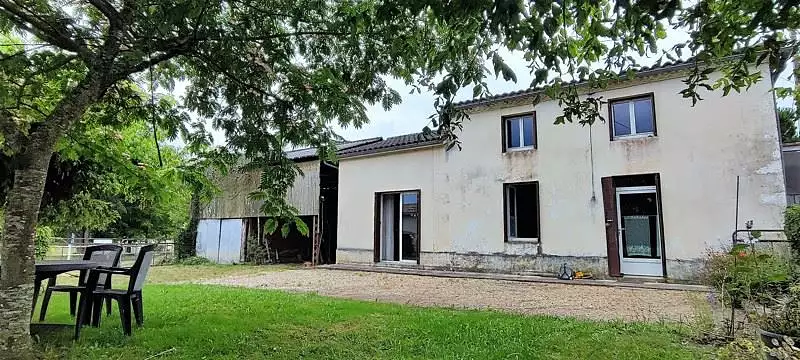 Dans un hameau de St Martin de Coux à 15 minutes de Coutras, maison habitable de suite en rez de chaussé composée d'une pièce de vie de 35m², une grande chambre de 25m², une salle d'eau et un wc. Possibilité d'aménager 40 m² de plus à l'étage avec escalier et double vitrage existant. Jardin clos de 900m² et dépendances.