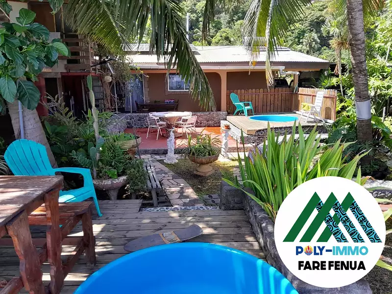 Le jardin mène à une 2? cuisine extérieure située sous un fare pote (structure couverte traditionnelle).