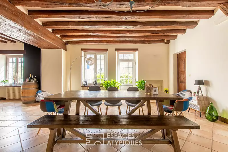 Situé entre Tours et Amboise, ce moulin d'exception datant de 1610 offre 719 m² habitables au coeur d'un parc bucolique de plus de 3 hectares, traversé par une rivière. Ancienne minoterie, il a été rénové avec soin afin d'allier authenticité et confort moderne. Le moulin principal comprend cinq chambres d'hôtes élégantes, chacune avec sa salle de bain privative. Le dernier étage offre une vue imprenable sur le parc et la rivière, tandis que le premier étage dispose d'une bibliothèque, d'une salle de réunion et d'un espace modulable en bureau ou salle de massages. La partie privée comprend trois chambres et deux salles de bains. Au rez-de-chaussée, un hall dessert un bureau avec poêle à bois, une cuisine ouverte sur une véranda lumineuse, ainsi qu'un vaste séjour avec salle à manger. La roue du moulin, datant de deux siècles, confère à l'ensemble une atmosphère médiévale et féerique. Un gîte indépendant, pouvant accueillir six personnes, propose trois chambres, deux salles d'eau, une cuisine équipée et un salon avec cheminée ? idéal pour recevoir famille et amis. Les granges, en excellent état, abritent un pool house avec bar et offrent de nombreuses possibilités d'aménagement : salles de réception, ateliers, espaces bien-être ou extension de l'hébergement. Une chambre froide et un atelier complètent cet ensemble polyvalent. Le parc clos, avec un pré et d'anciens boxes à chevaux, constitue un véritable havre de paix. Il dispose de salons de jardin, d'une piscine chauffée et couverte, et la rivière qui le traverse invite à des activités en plein air. Le moulin bénéficie d'un emplacement idéal, à proximité des châteaux de la Loire et des vignobles de Vouvray. La région propose de nombreuses activités de plein air, des marchés locaux et des festivals culturels. A seulement 5 minutes des commerces et 20 minutes de la gare TGV. CLASSE ÉNERGIE : B CLASSE CLIMAT : B. Montant moyen estimé des dépenses annuelles d'énergie pour un usage standard, établi à partir des prix moyens des énergies indexés sur les années 2021, 2022 et 2023 : entre 4898 euros et 6626 euros Contact (EI): Julie Rivière 06 31 35 22 95 Agent commercial immatriculé au RSAC de Tours n°2021AC00065. Les honoraires sont à la charge du vendeur. Les informations sur les risques auxquels ce bien est exposé sont disponibles sur le site Géorisques pour les zones concernées: www.georisques.gouv.fr Julie RIVIERE (EI) Agent Commercial - Numéro RSAC : - .