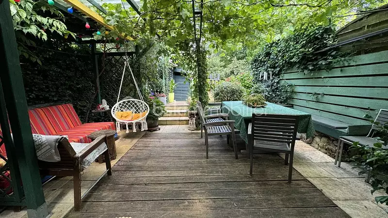 Elle se compose au RDC d'une entrée, d'une cuisine équipée, d'un séjour-salon de plus de 30 m2 ouvert sur un très joli jardin végétalisé.
