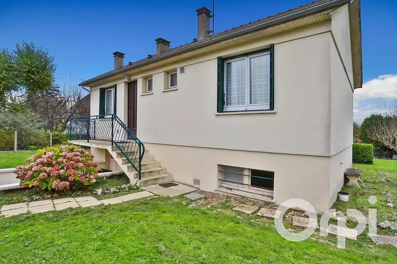 Gisors à 2 pas du Centre Ville, maison de plain pied surélevé sur sous sol total offrant: Entrée couloir, cuisine, séjour avec cheminée insert, véranda de 12m², 2 chambres, salle d'eau, wc, chauffage central fuel, sous sol total avec garage et buanderie, le tout sur un jardin clos de 717m².