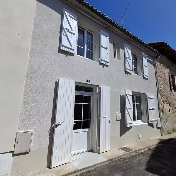 Maison de ville, entièrement rénovée avec goût et des matériaux de qualité, d'une surface habitable de 73.98 m² (sans terrain)comprenant au rez-de-chaussée : entrée dans cuisine équipée de 12.8 m² avec plaque de cuisson + hotte - salon/salle à manger de 24 m² avec poêle à granulés + cave enterrée avec ballon eau chaude thermodynamique - A l'étage : couloir de 1.8 m² - 2 chambres avec placards (11.5 m² et 18.2 m²)- salle d'eau de 4.3 m² avec sèche serviettes - dégagement avec branchement machine à laver - WC.