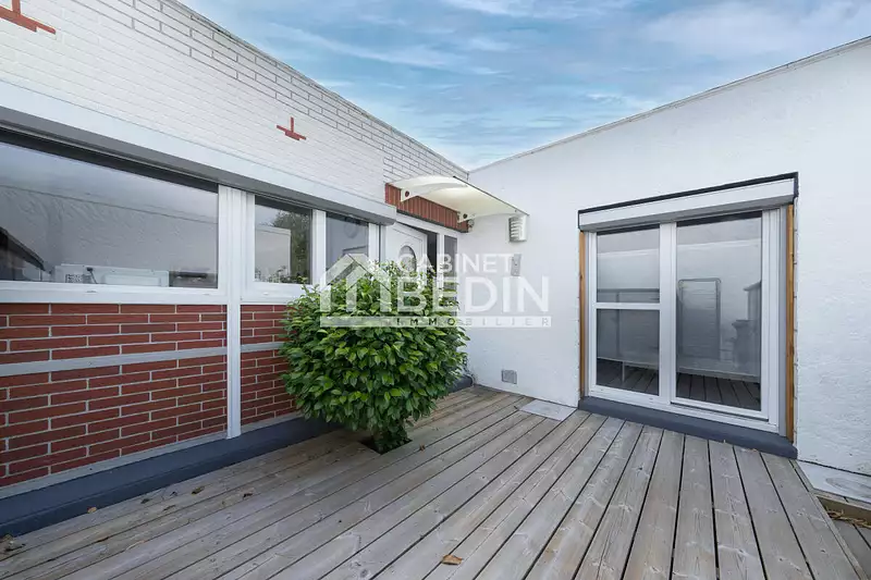 Exclusivité CABINET BEDIN - LA TESTE - Secteur ARCACHON MARINES - MAISON T3. Venez découvrir cette maison de plain pied rénovée, vendue meublée. Elle se compose d'une entrée ouvrant sur la cuisine équipée prolongée par le séjour, deux chambres avec placard toutes les deux donnant sur une terrasse, salle d'eau, wc, rangement. Elle est baignée de lumière et bénéficie d'un chauffage par climatisation réversible et poêle à granules. Deux terrasses d'environ 20m² agrémentent cette maison pratique et agréable ainsi qu'un parking aérien. Accessible à pied, commerces, piscine et port d'Arcachon, idéale pour les vacances ou pour une résidence principale. La maison est fait partie d'une copropriété. . Les informations sur les risques auxquels ce bien est exposé sont disponibles sur le site Géorisques : www. georisques. gouv. fr. Montant estimé des dépenses annuelles d’énergie pour un usage standard : entre 1316 et 1780 Euros/an (année de référence 2023) Bien en copropriété , Charges annuelles 1340. 00 Euros , Surface Carrez 73. 2m²