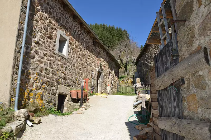 Dans la vallée de la Gluyére, secteur Saint Genest Lachamp, une ferme en bordure de hameau à 850 m d'altitude, constitué d'une maison en pierre de 73 m2 habitables entierement rénovée et isolée avec des matériaux écologiques, 3 chambres, cuisine, salon, salle à manger, salle d'eau. Deux dépendances en pierre également restent à aménager et offrent de belles possibilités d'acceuil de groupe, d'atelier ou de gîtes. L'ensemble des trois bâtiments est entouré d'une parcelle de 3800 m2. L'ensemble des terres compte 20 hectares non attenants qui sont constitués de terrasses, de près, de lande et de bois. Une source pérenne assure l'alimentation en eau pour le jardin, lui-même vierge de tout pesticide. Le calme, la position dominante, la vue magnifique et la beauté du lieu satisferont tous les amateurs de nature préservée. C'est le bon moment pour organiser une visite. Les informations sur les risques auxquels ce bien est exposé sont disponibles sur le site Géorisques : www. georisques. gouv. fr.