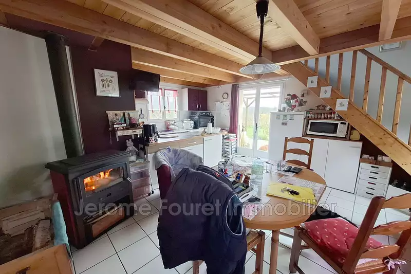 Maison d'habitation récente en très bon état. Entrée sur séjour avec cuisine ouverte, chambre, bureau, toilette et salle d'eau. A l'étage deux chambres et une salle de bain. Chauffage poêle à bois, et radiateurs électriques en appoint. Ballon d'eau chaude électrique. A l'extérieur, deux carports et une terrasse, terrain plat et sans vis-à-vis avec vue sur les monts du Cantal. Assainissement conforme.